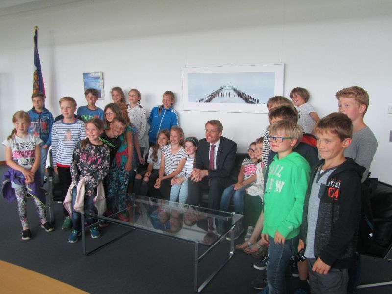 Landtagsbesuch: Schülerparlament der Grundschule Eidertal (Eingangshalle, Tribüne, Besucherforum |